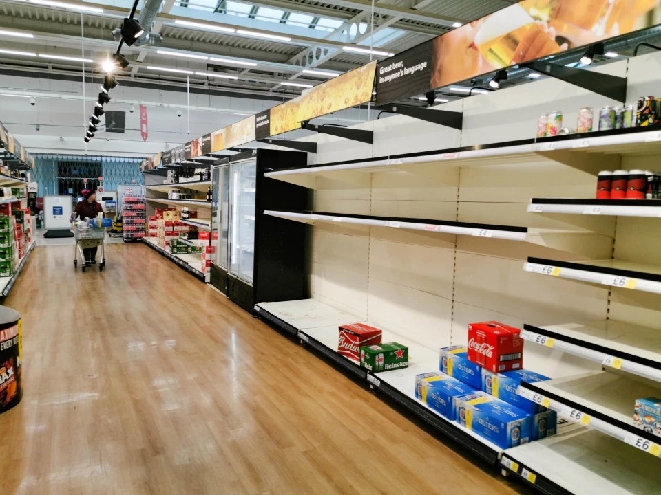 Tình trạng hoảng loạn mua sắm đã diễn ra tại nhiều siêu thị trên khắp nước Anh tuần này, khiến nhiều kệ hàng "bốc hơi" chỉ trong một thời gian ngắn. Tesco ngày 20/3 cho biết sẽ phải thuê thêm 20.000 nhân viên để tránh rơi vào tình trạng quá tải khi nhu cầu mua sắm của người dân tăng cao.