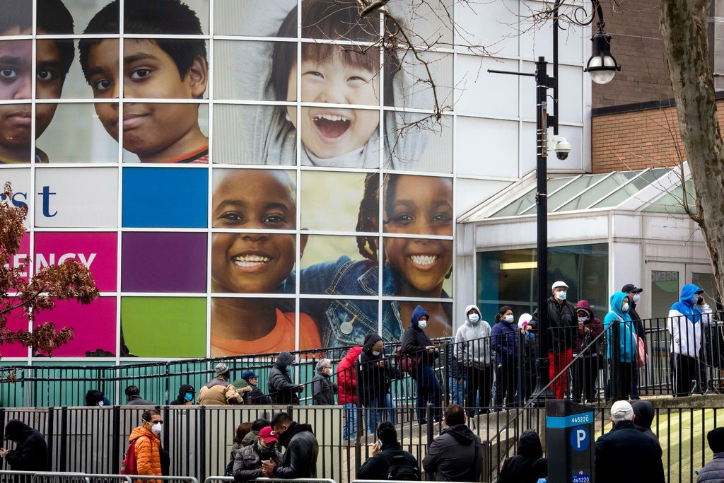 Người dân chờ đợi bên ngoài bệnh viện Elmhurst ở Queens hôm 20/3 để được xét nghiệm Covid-19. Ảnh: New York Times.