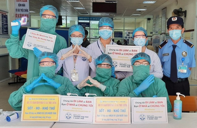 Các khuyến cáo kêu gọi kiểm tra sức khoẻ và cách ly khi có dấu hiệu sốt, ho, khó thở hoặc tiếp xúc với người từ vùng dịch trở về của đội ngũ y tế bệnh viện Đại học Y dược Huế.