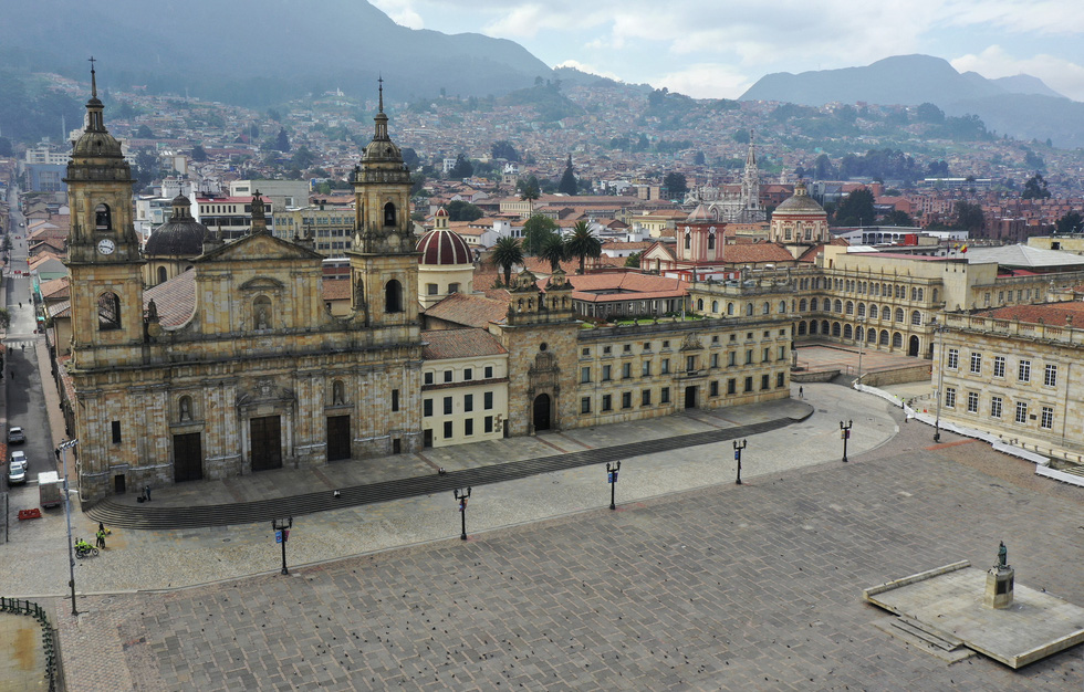 Ảnh chụp từ trên cao của quảng trường Bolivar ở Bogota, thủ đô Colombia, ngày 24-3 - Ảnh: AFP