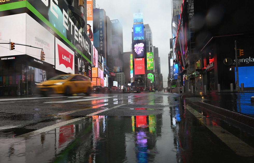 Quảng trường Thời đại (Times Square) ở New York, Mỹ ngày thường đông đúc là thế mà ngày 23-3 vắng tanh. Mỹ đã vượt qua Trung Quốc trở thành nước có nhiều ca nhiễm virus corona nhất thế giới - Ảnh: AFP
