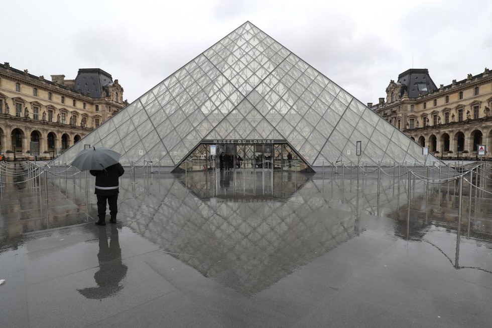 Bảo tàng Louvre - một trong những địa điểm du lịch đông khách nhất thế giới - vắng vẻ như bị bỏ hoang. Nhân viên bảo tàng đã từ chối đi làm khi dịch COVID-19 bùng phát ở nước Pháp - Ảnh: AFP