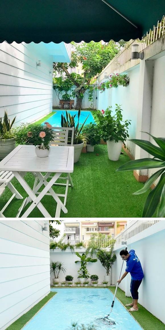 Ngoài ra còn có cả một bể bơi nhỏ ở bên cạnh ngôi biệt thự để phục vụ sở thích bơi lội của hai công chúa nhỏ của Quyền Linh và Dạ Thảo.