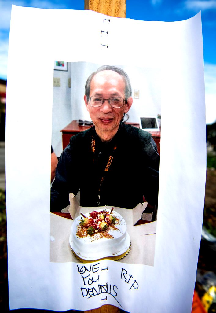 Bức ảnh tại nơi tưởng niệm ông Dennis Nguyễn, người bị xe đụng tại ngă tư Anaheim Street và Pacific Coast Highway tại Long Beach, được chụp ngày March 25 tháng 3, 2020. Đây cũng là địa điểm mà ông Dennis Nguyễn đă tử nạn. (Long Beach Post)