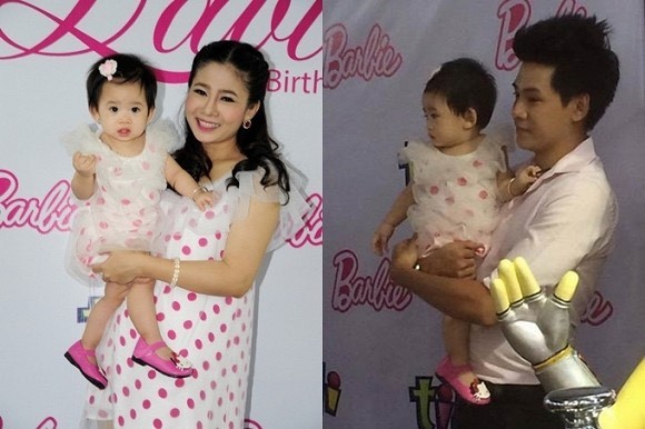Mai Phương và Phùng Ngọc Huy trong tiệc thôi nôi con gái năm 2014.