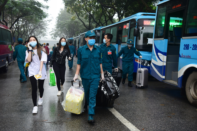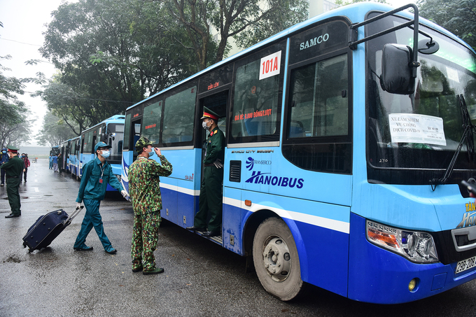 Các tuyến xe buýt đưa người hoàn thành cách ly về Ban Chỉ huy quân sự các tỉnh trước khi về nhà, điểm đến là Thá*i Nguyên, Hải Phòng, Quảng Ninh, Hưng Yên, Ninh Bình, Thanh Hóa...