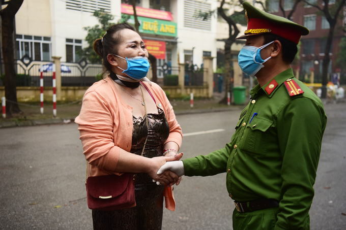 Cô Lê Thị Hồng Anh (Việt kiều Pháp) bịn rịn chia tay một cảnh sát. Cô từ Pháp về Việt Nam, quá cảnh Thái Lan, vào khu cách từ ngày 19/3.