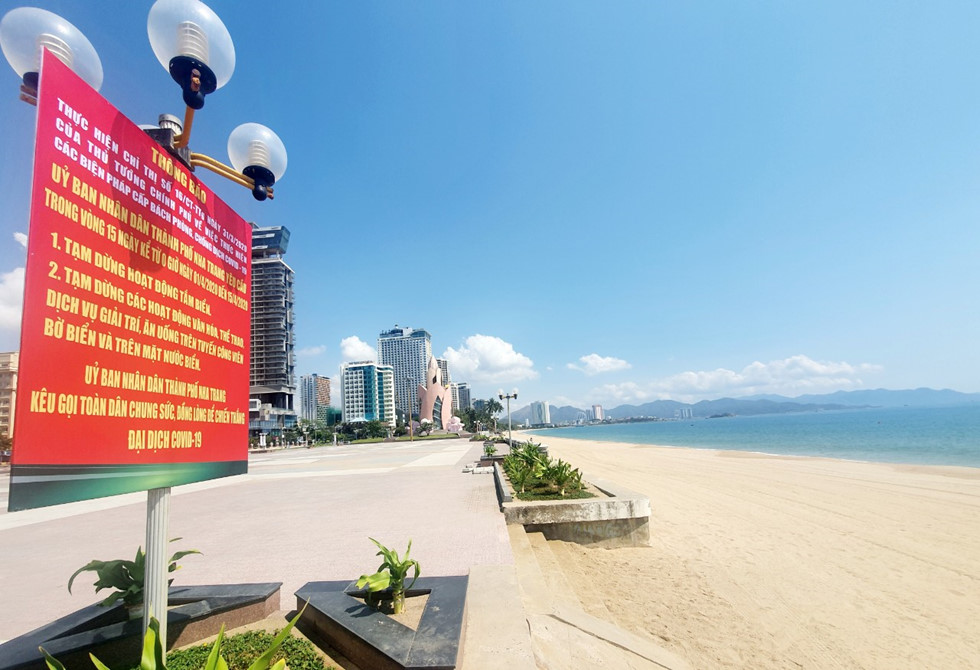 Từ chiều 31.3, UBND TP.Nha Trang đã thông báo tạm dừng các hoạt động tắm biển, văn hóa, văn nghệ, thể dục, thể thao trên tuyến công viên bờ biển đường Trần Phú - Phạm Văn Đồng trong vòng 15 ngày, kể từ 0 giờ ngày 1.