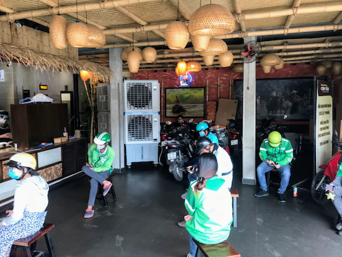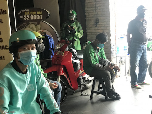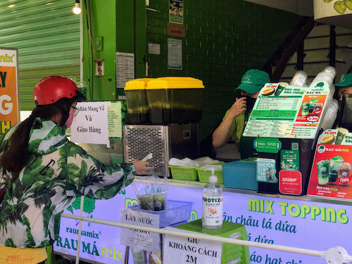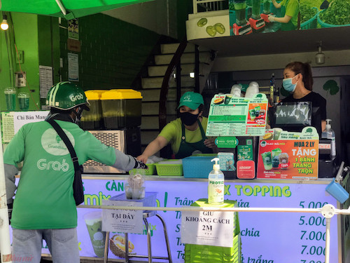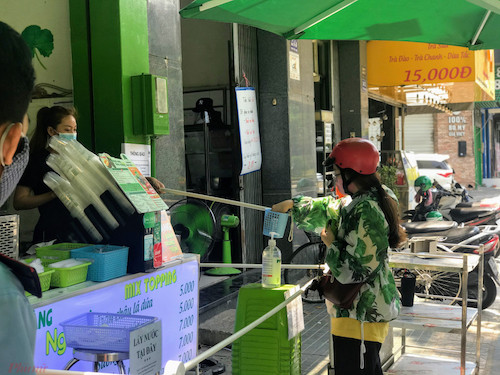 Một tài xế công nghệ chuyên mua hàng giao cho khách cho biết, hiện nhiều quán ở TPHCM thiết lập các "hàng rào bảo vệ" hoặc phân chia các khu vực để giữa hai người đảm bảo cách nhau 2 mét. Có nhiều khách hàng khi mua đã thanh toán trực tuyến nên giảm luôn khâu thanh toán.