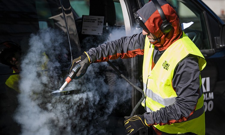Người đàn ông vệ sinh và phun hóa chất tẩy trùng cho xe taxi để ngăn nCoV lây lan tại Stockholm, Thụy ĐIển ngày 2/4. Ảnh: AFP.