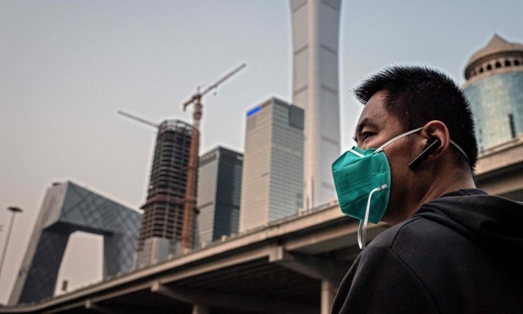 Người đàn ông đeo khẩu trang trên đường phố Bắc Kinh, Trung Quốc hôm 7/4. Ảnh: AFP.