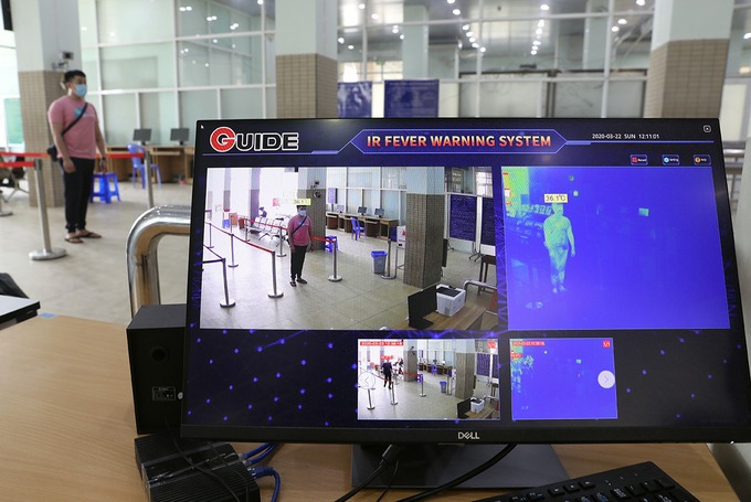 Máy đo thân nhiệt người nhập cảnh tại cửa khẩu quốc tế Mộc Bài, hôm 21/3. Ảnh: Hữu Khoa.
