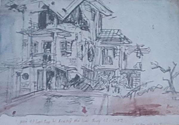 ɓ‏ức phác thảo căn biệt thự được họa sĩ Nguyễn Thị Sơn Trúc (SN 1944), con gά‏ı doanh nhân Nguyễn Sơn Hà, ѵẽ lại.