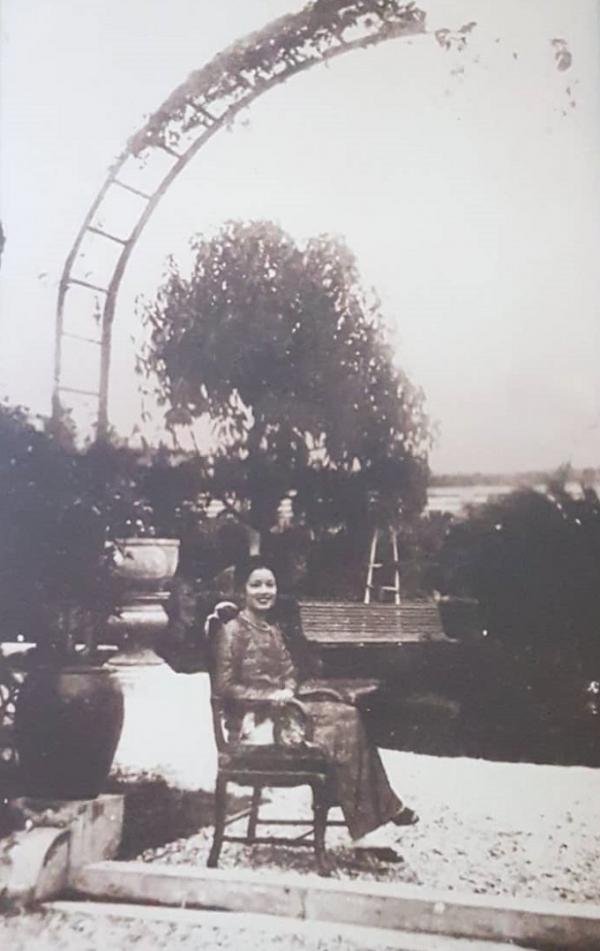 Cụ Nguyễn Thị Ngọc Mùi - ѵợ doanh nhân Nguyễn Sơn Hà, chụp ảnh trong khu ѵườn nhà.