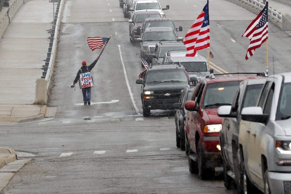Cuộc biểu tình được tổ chức bởi Liên minh Bảo thủ Michigan với hàng nghìn người tham gia. Tổ chức này kêu gọi người biểu tình lái ôtô đến thủ phủ Lansing, chủ động gây tắc nghẽn giao thông để chính quyền bang lắng nghe bức xúc. Ảnh: AP.