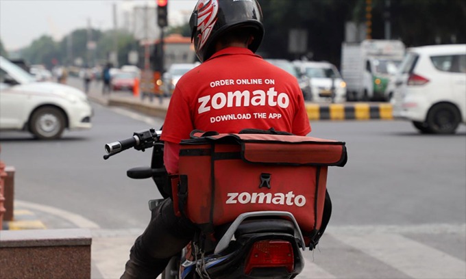 Một tài xế giao đồ ăn của công ty Zomato trên đường phố Ấn Độ. Ảnh: First Post.