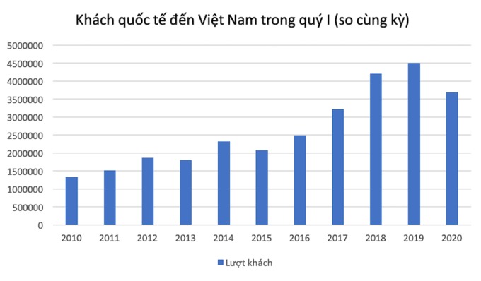 Những năm sau đó, ngành du lịch Việt Nam thường nằm trong nhóm tăng trưởng mạnh nhất thế giới. Tuy nhiên, khi Covid-19 bùng phát từ đầu năm nay, khả năng hồi phục sẽ khó lường hơn và các kịch bản được dự đoán cũng phức tạp hơn. Trong 3 tháng đầu năm, khách quốc tế đến Việt Nam đạt khoảng 3,7 triệu lượt, giảm 18,1% so với cùng kỳ năm 2019; riêng tháng 3 giảm 68% so tháng 2 và dự báo tháng 4 sẽ "chạm đáy".