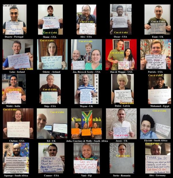 Các hình ảnh được đăng tải cùng dòng chia sẻ: “Việt Nam, chúng tôi yê*u bạn. Gửi đến tất cả các bác sĩ, y tá, quân sự, cảnh sá*t và tình nguyện viên lời cảm ơn các bạn vì sự h*y sin*h to lớn để chúng tôi được an toàn. Việt Nam cố lên!".