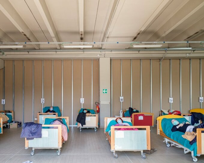 Các giường bệnh tại một bệnh viện ở Brescia. Ảnh: Lorenzo Meloni.