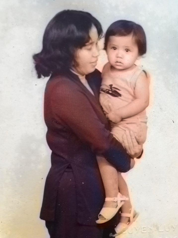 Ngôi sao dòng phim mỳ ăn liền Việt Trinh vừa chia sẻ tấm ảnh chụp chung với mẹ. Khi đó, nữ diễn viên còn nhỏ và rất bụ bẫm, dễ thương. Mẹ Việt Trinh để tóc ngang vai đang âu yếm nhìn con gái.
