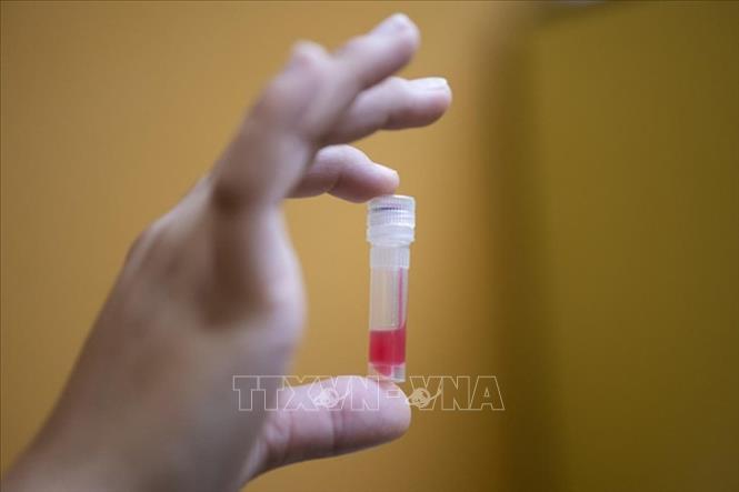 Mẫu máu được lấy để xét nghiệm nhằm đánh giá về kháng thể đặc hiệu với virus gây dịch COVID-19 tại Thụy Sĩ. Ảnh: Swiss Info/TTXVN