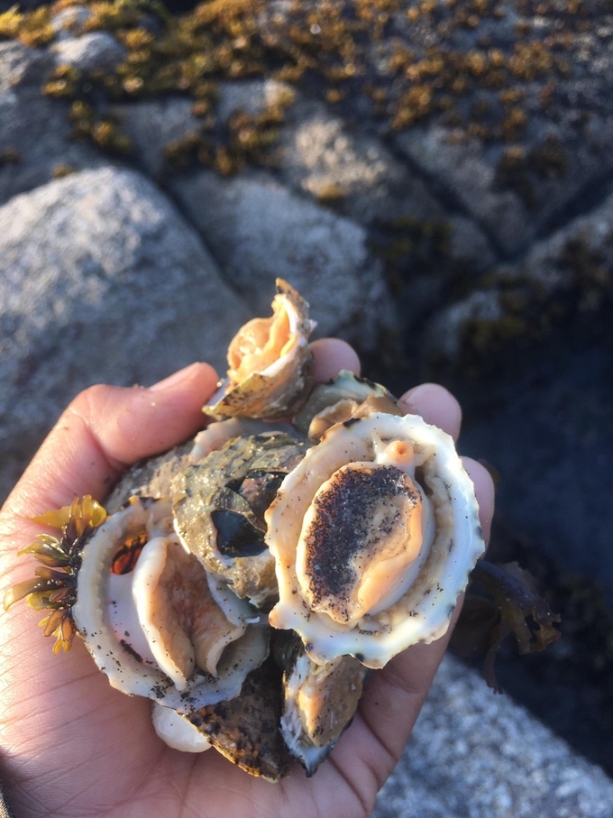 Bào ngư trên bãi biển mà cô tìm thấy được. Ảnh: NVCC.