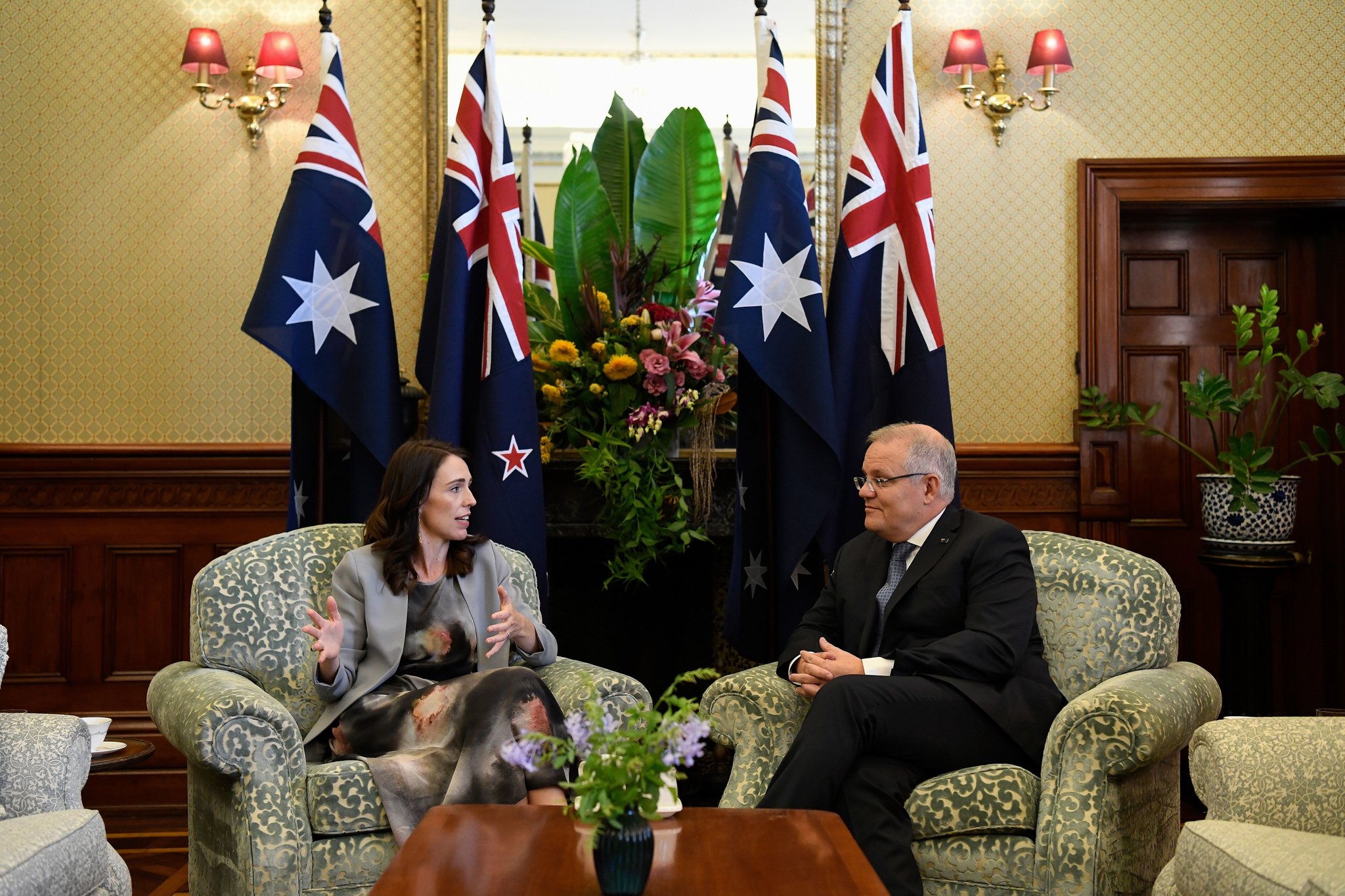 Thủ tướng Úc Morrison và người đồng cấp ở New Zealand – bà Jacinda Ardern, trong một buổi gặp mặt (ảnh: NY Times)