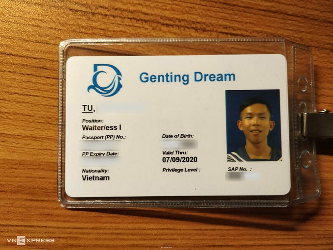 Mỗi nhân viên sẽ được phát một tấm thẻ (Crew Card). Hậu gọi đó là chiếc thẻ "thần thánh", vì nó được dùng trong mọi trường hợp: mua wifi (wifi trên tàu khá đắt nên anh thường đến nước nào sẽ mua sim của nước đó), đồ uống, thức ăn trong quầy bar, đồ miễn thuế trên tàu và thỉnh thoảng tự thưởng cho mình một bữa ăn hoành tráng trên tàu. Mỗi lần quẹt thẻ, số tiền chi ra sẽ được trừ thẳng vào lương tháng. Thẻ này cũng để nhân viên lên, xuống tàu mỗi khi cập cảng.