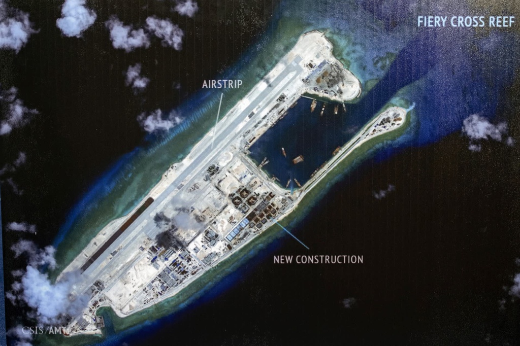Đá Chữ Thập ở quần đảo Trường Sa, đang bị Trung Quốc chiếm đóng, quân sự hóa và cải tạo thành đảo nhân tạo phi pháp. Ảnh: AP.