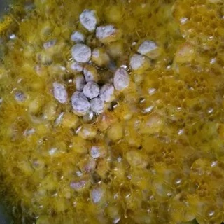 - Trứng đập vỡ, cho vào lạc + 1 thìa canh đường + 2 thìa canh bột mì. Tùy khẩu vị để điều chỉnh lượng đường phù hợp, thêm hoặc bớt đi. Nếu muốn món ăn đậm vị hơn, bạn có thể cho thêm một chút muối.
