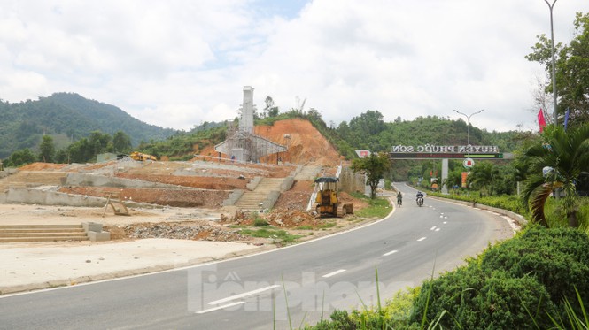 Tượng đài chiến thắng Khâm Đức nằm bên trục đường Hồ Chí Minh (đoạn qua thị trấn Khâm Đức, huyện Phước Sơn, Quảng Nam) đang được đầu tư xây dựng quy mô. Để có mặt bằng xây dựng tượng đài này, cả một quả đồi lớn ngay đầu thị trấn Khâm Đức đã được hạ thấp, san bằng. Ảnh: Nguyễn Thành
