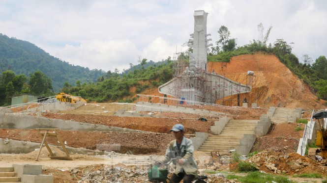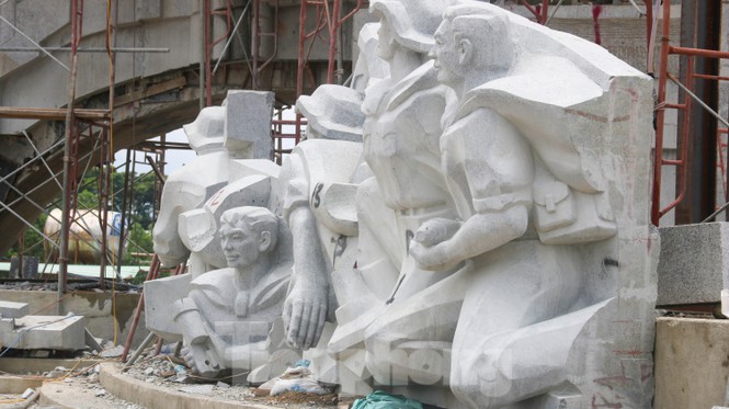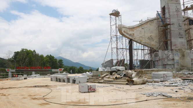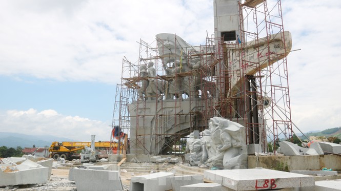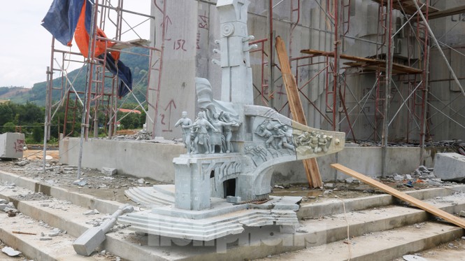 Theo kế hoạch tháng 8/2020 công trình tượng đài sau 3 năm khởi công sẽ hoàn thành, nhưng đến nay nhiều hạng mục còn dang dở. Ảnh: Nguyễn Thành