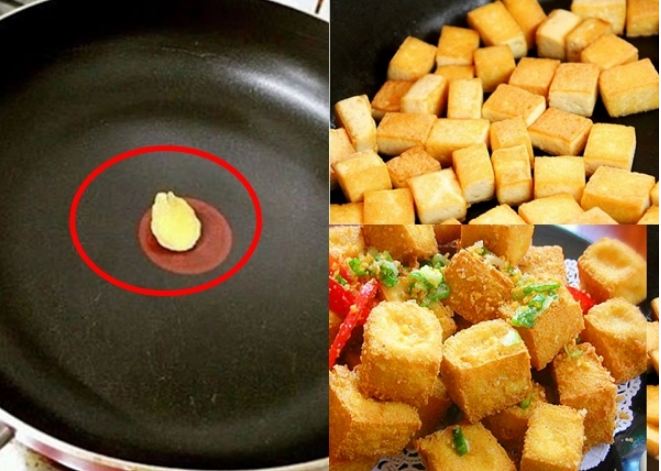 Cho một lát gừng nhỏ xuống đáy chảo trước khi rán đậu.