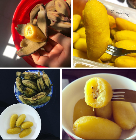 Món chuối cau luộc có màu vàng ươm bắt mắt, khi ăn cảm giác dẻo thơm và đỡ ngán hơn chuối thường - (Ảnh: @linhdantt, @toccvangg, @UyenVysg, @tham_nhimyeu).