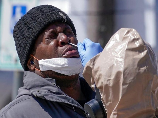 Lấy mẫu xét nghiệm nhanh COVID-19 tại một bãi đậu xe ở bang Wisconsin, Mỹ. Ảnh: AP