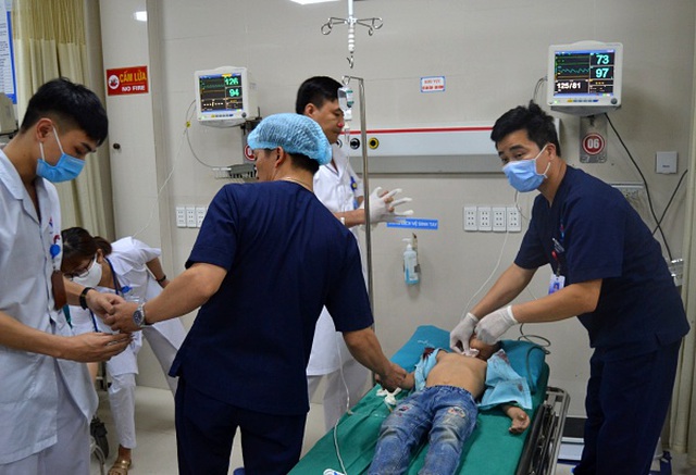 Các bác sĩ huy động toàn bộ kíp cấp cứu cầm máu, dùng thuốc giảm đau chống sốc và chuyển trẻ mổ cấp cứu.