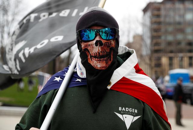 Một người biểu tình ở Mỹ trong dịch Covid-19. Ảnh: Reuters