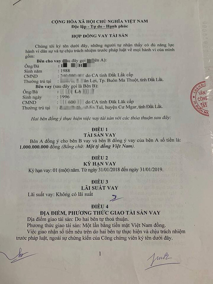 Trước đó, bà L.T.H. (SN 1988, ngụ TP Buôn Ma Thuột, tỉnh Đắk Lắk) đã gửi đơn tới các cơ quan chức năng tố cáo bà H.L.M. (SN 1996, cán bộ công an) đã vay mượn nhiều lần với tổng số tiền 5 tỉ đồng từ năm 2017 đến nay nhưng không trả.