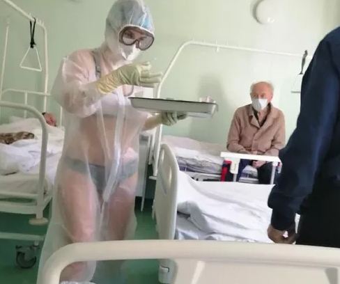 Old  Default Cư dân mạng Nga "dậy sóng" vì y tá khoác bộ đồ bảo hộ bên ngoài bikini