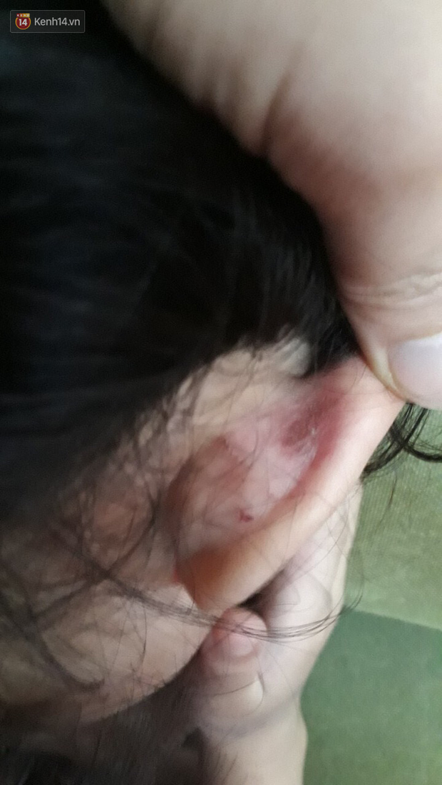 Theo chị Oanh, bản thân lúc đó cũng không để ý nhiều đến vết thương của em do không quá nặng và không để ý vị trí sau tai em có vết sứt hay không.