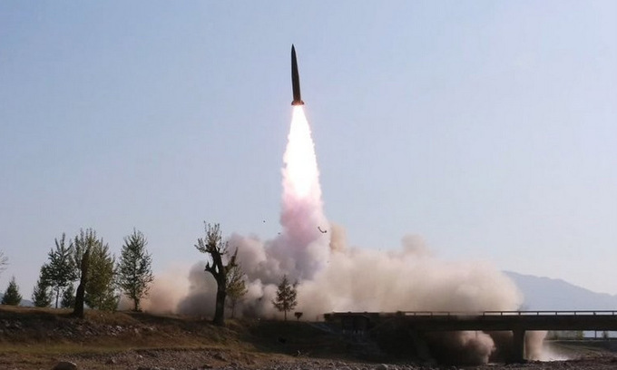 Tên lửa đạn đạo tầm ngắn Triều Tiên phóng hồi giữa năm ngoái. Ảnh: KNCA.