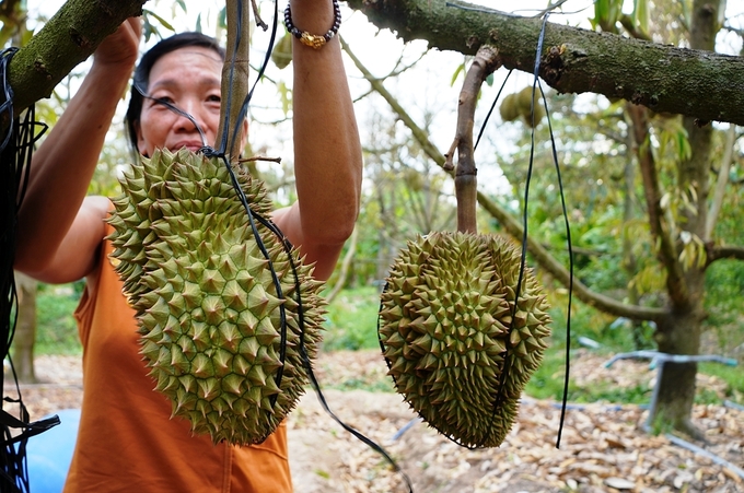 Sầu riêng trồng tại nhà vườn Tiền Giang. Ảnh: Hoàng Nam.