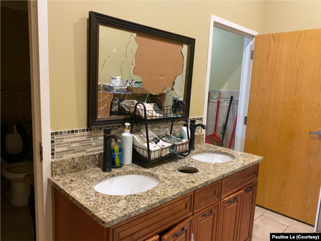 Một ô cửa kính bị đập vỡ rồi người ta ùa vào bên trong. Họ lục tung các ngăn tủ và lấy đi một số món đồ có giá trị nhất. Cả thùng rác họ cũng mang đi để đựng những thứ mà họ vừa vơ vét. Những thứ mà lẽ ra sẽ giúp tiệm của chị hoạt động trở lại sau hơn hai tháng đóng cửa vì dịch virus corona.