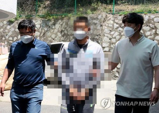 Cảnh sát Taean bắt giữ người đàn ông Trung Quốc trong nhóm 8 người nhập cảnh lậu vào Hàn Quốc ngày 21-5. Ảnh: Yonhap