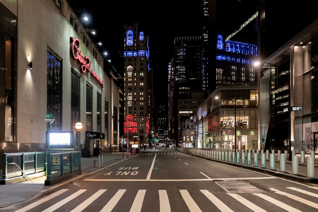 Một con đường vắng lặng ở Phố Wall hôm 27/3, giữa cao điểm dịch bệnh tại New York. Ảnh: Reuters.