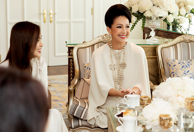 Diễm My sang trọng, quý phái trong bộ cánh dáng rộng và phụ kiện ngọc trai đắt đỏ.