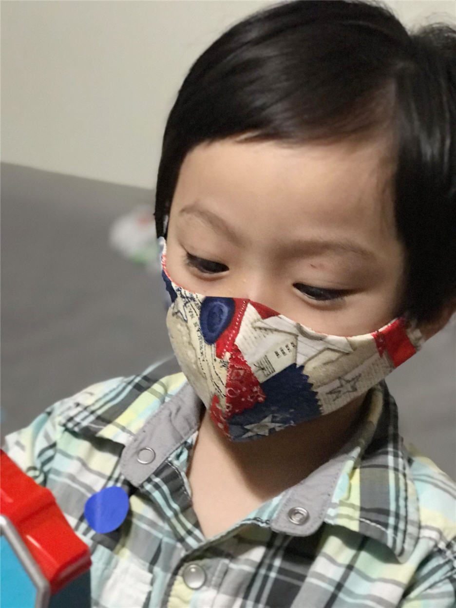Màu sắc hấp dẫn làm em bé nào cũng thích đeo khẩu trang. (H́nh: Lê Quỳnh Nhi cung cấp)
