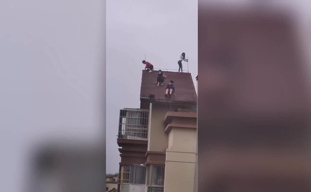 Old  Default "Đau tim" trước cảnh 4 em nhỏ leo trèo trên mái tòa chung cư 32 tầng