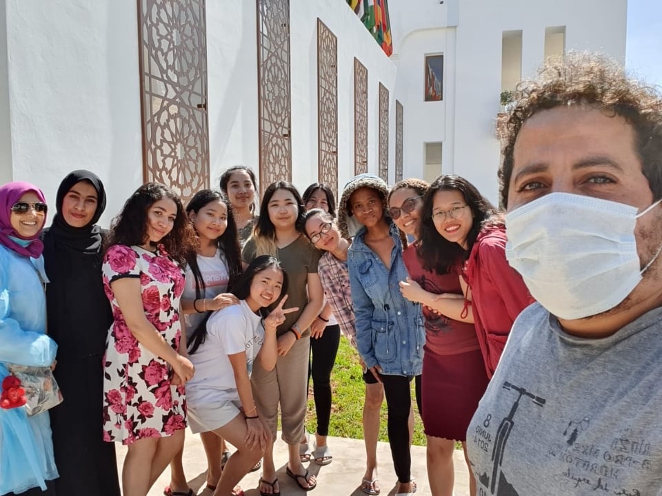 Cẩm Hoa (thứ hai bên phải) cùng các sinh viên nước ngoài tại Rabat tham gia từ thiện.