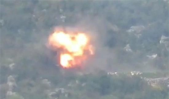 Sau khi T-72 trúng tên lửa, một vụ nổ lớn đã xảy ra, kèm theo một số mảnh vỡ nằm rải rác xung quanh.